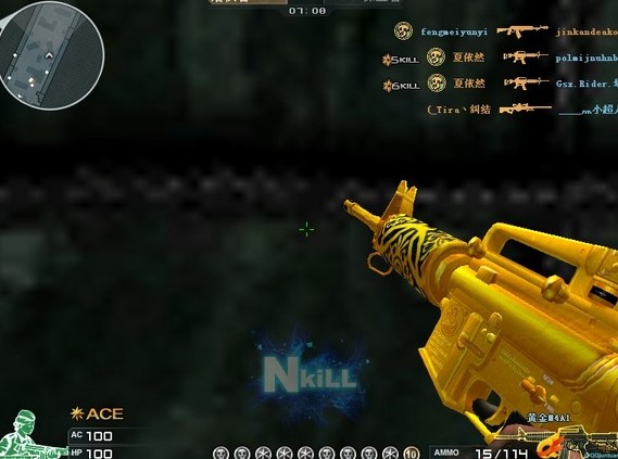 黄金ak-47:更大的装载弹夹数量,ak系列枪支里最大的破坏力,马哲,xyc等众位职业选手带来的明星效应,它,黄金ak-47我们心目中的最完美枪械之一。小记认为黄金ak-47的打法中最犀利的两种是泼射和速点,泼射流里将它演绎的最好的当属AB队长兼指挥李杨,而速点里现在汉宫clan.c4的耐皮最为抢眼。生化模式中配备弹夹它也能够做到游刃有余,压枪扫射的技能可以在此种模式中更好的发挥。得到它的方式—8元钱抽奖,官网的道具商城7天100qb以及每日任务集齐卡片可以获得7天试用权。