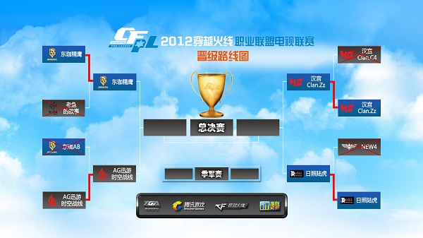 2012年穿越火线职业联盟电视联赛第一赛季四分之一决赛在昨日完美落幕,东珈精鹰、AG迅游.时空战线、汉宫Clan.Zz、日照陆虎强势挺进四强,老鱼的故事、东珈AB、汉宫Clan.C4、NEW4遗憾地离开CFPL的赛场。