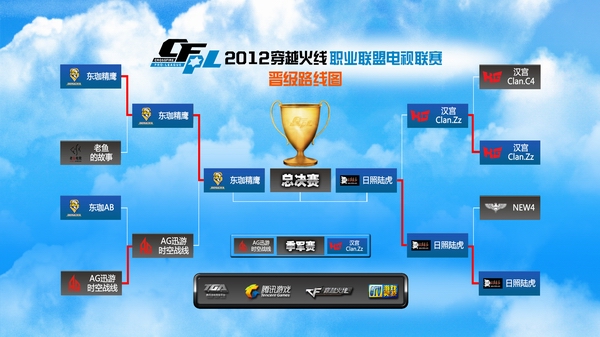 首届穿越火线职业联盟电视联赛(Crossfire Pro-League,下简称CFPL)即将打响最终的冠军决赛。经过小组赛、小组附加赛、1/4决赛和半决赛的四轮争夺,坐拥多个冠军头衔的王牌劲旅QQ会员东珈精鹰与另一支夺冠热门队伍,同样实力不凡的日照路虎会师4月8日的总决赛,而先后败于上述两队的AG迅游.时空战线则与汉宫Clan.Zz将在4月7日展开对赛事季军的争夺。两大豪门演绎冠军之争,实力双雄为季军殊死一搏,比赛尚未开启,对于这两场终极之战结果的猜测与争论便已铺天盖地,各界对于本届CFPL赛事的关注度也再掀高潮。