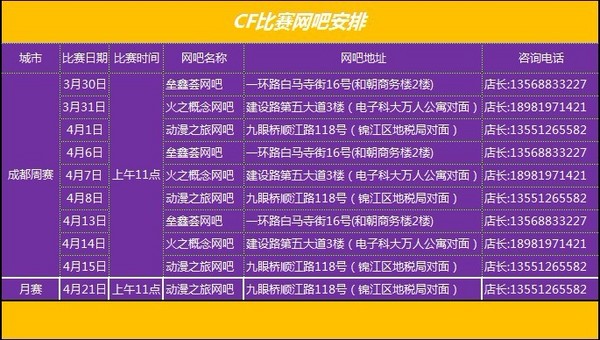乐山、泸州赛事将会在4月第二周开启,活动地点、QQ交流群请玩家留意官网最新新闻