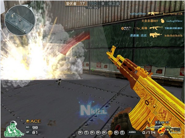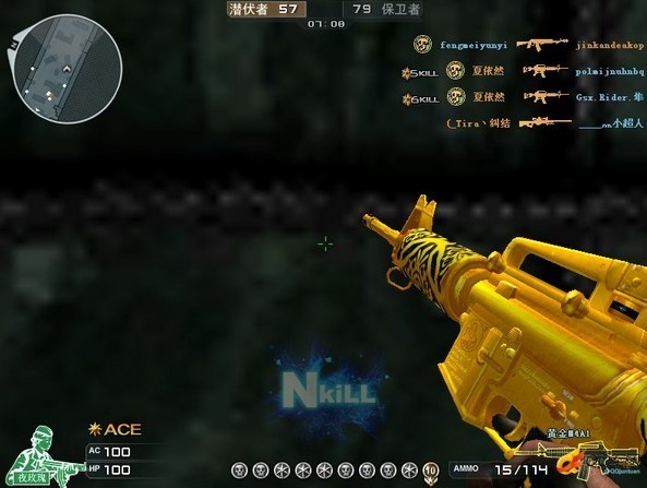 黄金ak-47:更大的装载弹夹数量,ak系列枪支里最大的破坏力,马哲,xyc等众位职业选手带来的明星效应,它,黄金ak-47我们心目中的最完美枪械之一。小记认为黄金ak-47的打法中最犀利的两种是泼射和速点,泼射流里将它演绎的最好的当属AB队长兼指挥李杨,而速点里现在汉宫clan.c4的耐皮最为抢眼。生化模式中配备弹夹它也能够做到游刃有余,压枪扫射的技能可以在此种模式中更好的发挥。得到它的方式—8元钱抽奖,官网的道具商城7天100qb以及每日任务集齐卡片可以获得7天试用权。