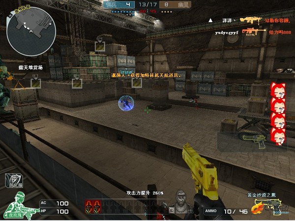黄金沙漠之鹰:和“迷彩沙鹰”相比,黄金沙漠之鹰的长处在于10发子弹的装弹量,也就是说面对敌人的时候可以轻松的撂倒至少3名敌人。上半身49的伤害在近战中将成为步枪手的噩梦,虽然上弹速度不及deserteagle-a,但综合属性绝对算的上完美。不论是配备awm-a或者是“大炮”它都游刃有余,在狙击枪一枪放空之时立刻掏出它给予敌人致命一击,打手枪时要注意尽量保持在敌人头部高度,因为碰到优秀步枪手往往没有开第二枪的机会,即使子弹数量很多。得到它的方式—9元钱抽奖,官网的道具商城7天200qb。