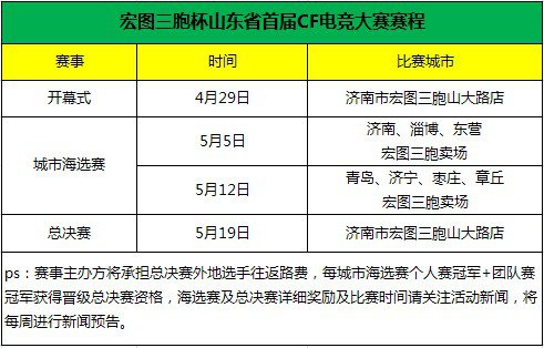 “宏图三胞杯”山东省首届《穿越火线》电子竞技大赛赛程规划: