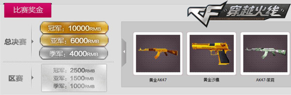 CF5V5男女混合赛为了鼓励更多的玩家加入到比赛中来,特意设立了高额的比赛奖金和稀有的绝版道具。绝版道具包括M4A1-粉红、AK-47茉莉、黄金AK47、黄金M4A1等,每一样道具都是在赛场上不可夺得的杀敌利器。选手在比赛过后,将有机会得到这些绝版道具。相信只有真正的火线勇士才有机会获此殊荣,希望各位参赛玩家能够在接下来的比赛中越战越勇,赢取最大的收获。