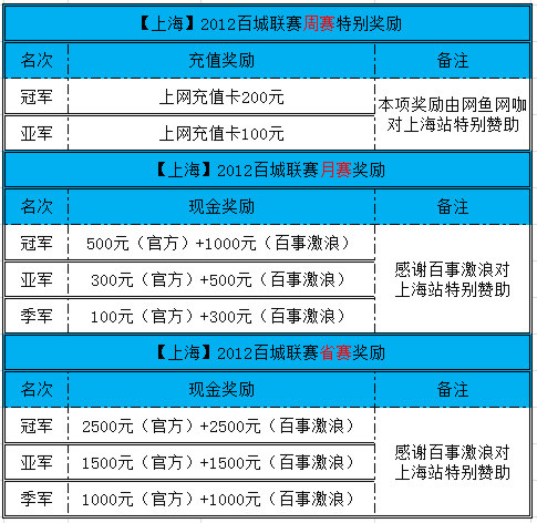 百城联赛月赛奖励