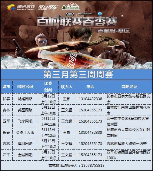 吉林省2012CF百城春季赛最后一轮周赛将在本周开启!!!长春、四平、吉林三地的玩家,请抓住最后的月赛晋级机会!