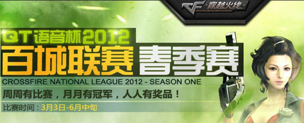 百城联赛是CF最早推出的全民赛事,每年共分春、秋、冬三个赛季的比赛,牵动着千万玩家的心。百城联赛赛点分部广泛,参赛人数繁多,在积累了数年赛事的举办经验之后,使得百城联赛赛制更为完善,流程更为成熟。“周周有比赛,月月有冠军,人人有奖品”的大赛宗旨,以及稳定的赛季也吸引了许多职业战队的参赛。