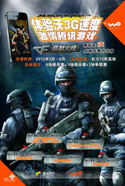 长沙联通体验沃3G速度,激情腾讯游戏, 赢3G手机! 湖南联通高校CF校园争霸赛已经进入了第六.七场!