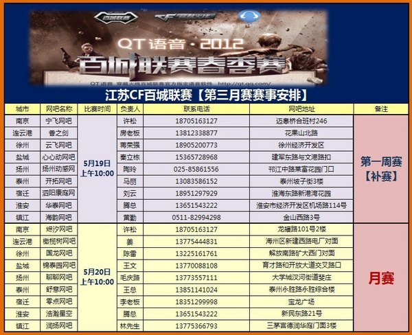 阳明三月,我们迎来了2012百城联赛春季赛江苏 九大城市 18家网吧 同步火热开启!