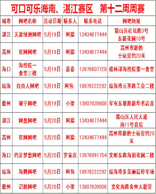 2、此次海南省、粤西(湛江、雷州、茂名、高州)各举办一场省决赛,各有一支战队晋级全国八大区域赛