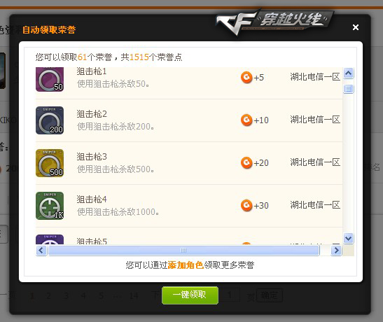 海量荣誉一键领取