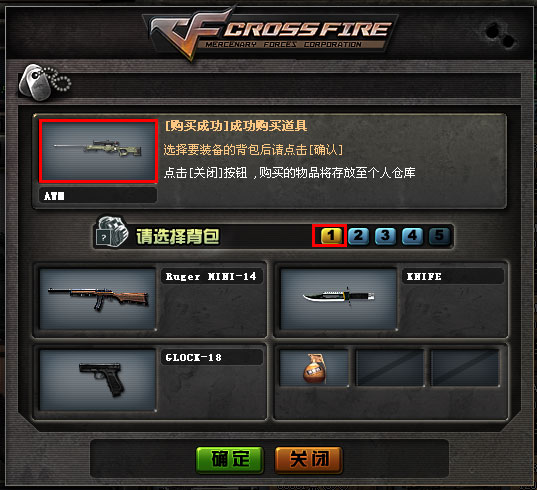在成功购买道具后,玩家可以 直接选择装备至几号背包。配置背包更加方便快捷!