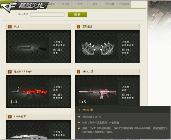 全新的CF资料库,对CF中的道具、角色、地图、军衔、战斗模式都进行了分类,并且提供人性化的便捷搜索功能,让我们可以轻松获取游戏中的各种内容资料,轻松成为一个“CF百事通”。