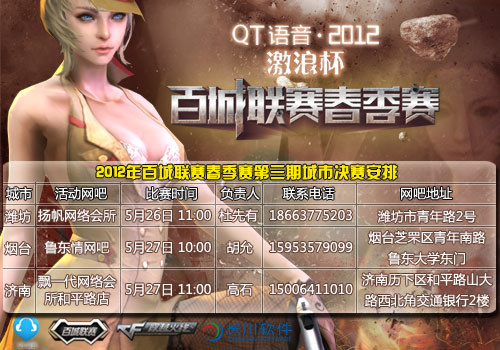 由腾讯济南办事处联合济南百事可乐饮料有限公司主办、山东长川软件有限公司承办的2012年“激浪杯”CF百城联赛春季赛山东赛区本周将迎来潍坊、烟台、济南三个地市的城市月赛,经典近身武器收割者、百城联赛专属道具、黄金道具、激浪饮料等诸多奖品等你来拿!