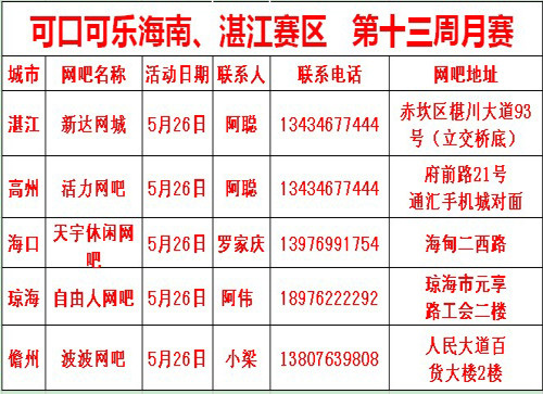 【海南、湛江】2012 可口可乐百城联赛五月月赛