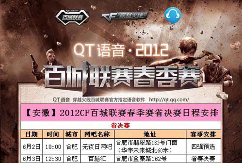 【安徽】2012CF百城联赛春季赛省决赛日程安排: