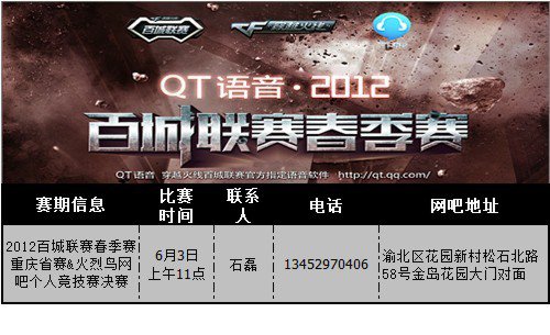 让大家期待已久的重庆2012CF百城联赛春季省赛即将打响,同时,也迎来了火烈鸟网吧的个人竞技赛决赛。本周我们将感受最为激动人心的时刻,各位CF屌丝将在火烈鸟网吧等你来面对!!取得晋级名额的战队们,你们准备好了吗?丰厚的奖金,丰富的奖品,将点燃CFer们的火线梦想。