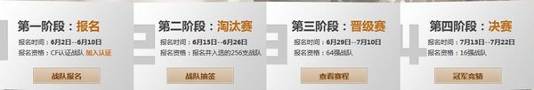 比赛分为淘汰赛、晋级赛和决赛三个赛段,层层选拔优胜者,最终决出冠亚季军。每个赛段开启前两天,队长须前往页面抽签决定比赛分组;比赛开启前一天,页面公布本赛段赛程,各战队可点击“查看赛程”查看详情。