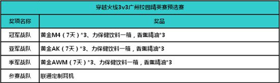 炎炎夏日,腾讯游戏广东站特别为广州大学城CF校园玩家们举办了一场穿越火线3v3广州校园精英赛。广州大学城的玩家们,想缓解一下巨大的学业压力吗?想与队友们鏖战于惊心动魄的战场、体验命悬一线的紧张与刺激吗?想赢取力保健饮品、小Q机器人、联通无线上网资费卡等丰富奖品吗?不要犹豫,赶快喊上你的同伴们,报名参加,来一场酣畅淋漓的决战吧!