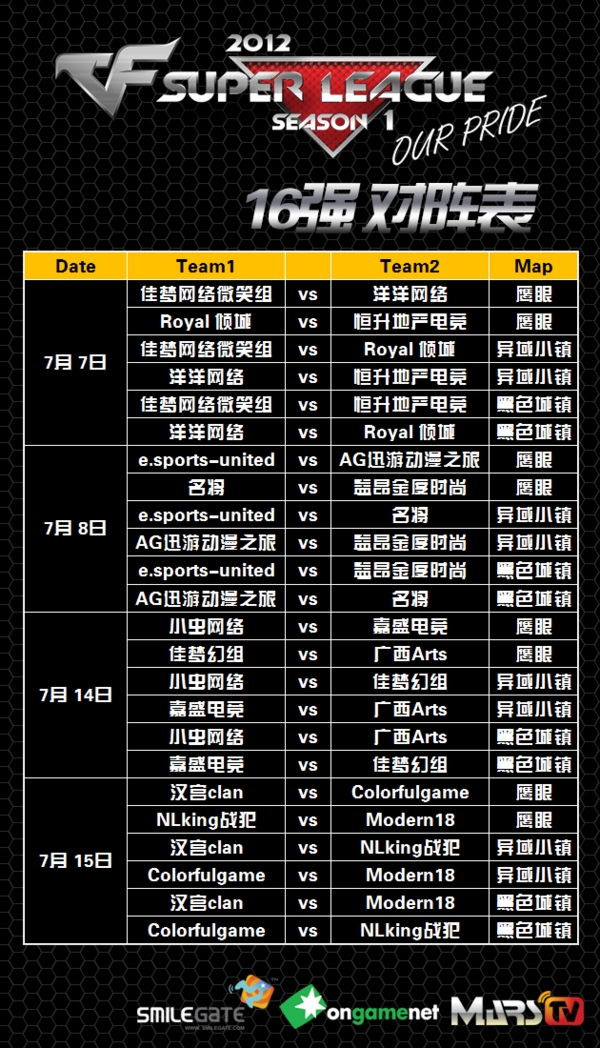 6月24日下午四时,2012CFS穿越火线超级联赛第一赛季举行了赛前抽签会。抽签会由MarsTV全程参与制作直播,谢言及林青主持了整场仪式。抽签会上首先进行了16强小组赛的抽签,四个小组分组情况已经确定。本次联赛由于战队个人原因,种子战队和预选赛8强均做出了小范围调整。东珈精鹰、AG迅游时空等队伍的退出虽然增添了遗憾,但AG迅游动漫之旅、佳梦网络微笑组以及汉宫Clan等种子队的实力仍然不可小觑。如嘉盛电竞,NLKing战犯这样的预选赛新秀脱颖而出,为CFS增添了新的活力。另外,韩国FPS电竞冠军战队e.sports-united也加入到这次比赛中,更是使CFS向国际赛事迈出脚步的同时为比赛增加了更多看点。
