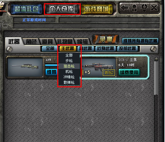 现在,随新版本“狼牙传说”上线的全新系统功能——仓库武器分类查看功能,将使得玩家得以在个人仓库中,按照武器类别来分别查看各类主武器。