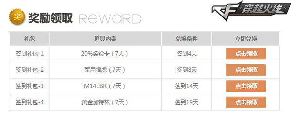 20%经验卡、军用指虎、M14EBR、黄金加特林等实用奖励,只需每次登陆竞猜页面,轻点鼠标即可瞬间获取。大礼不限量,人人不落空!
