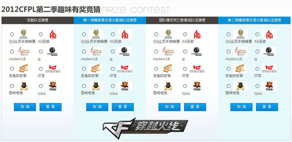 CF赛事体系中规格最高的原创品牌赛事——“CF职业联盟电视联赛”(简称CFPL)线下决赛阶段的比赛正在火热进行当中。对于普通CFer而言,除观看赛事外,参与TGA平台竞猜活动、预测比赛结果,无疑是参与比赛的最佳方式。全民争做“预言帝”,CFPL竞猜赢好礼,人人不落空!