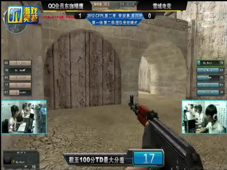 两位国内优秀狙击手在沙漠1-TD的正面对决开始了,双方连续刷频比分逐步上升。东珈精鹰在50分时取得10哥Frag的领先。