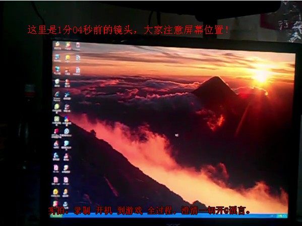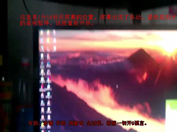 其实我不的不说这个破狙还是一个有点聪明的人,其实只是点小聪明而已。为了重新取得玩家们的信任和虚荣感,他录制了这段视频,大家注意1分04秒前的镜头,屏幕的位置,以及1分04秒后屏幕的位置,这显然是录制视频录制到开机后暂停,开了G后,接着把摄像的拿过来,接着拍,我们可以看到很明显的屏幕抖动。
