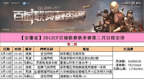 【安徽】2012CF百城联赛秋季赛第二月第二周日程安排: