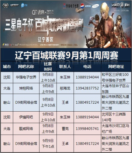 【辽宁】“三星电子杯”CF百城联赛9月第一周赛事