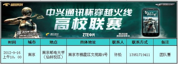 【江苏】中兴通讯杯CF高校联赛登陆南京邮电大学!