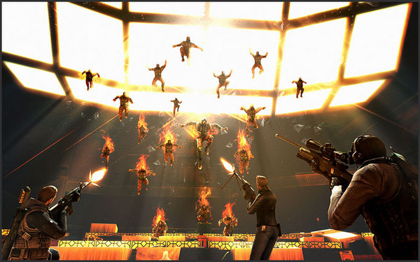 进入“子弹时间”状态后,玩家视野也会随之变化——“白化”,剧场中回荡起巴赫名曲“G弦的咏叹调”,无数的生化怪物伴随破裂的天窗玻璃缓慢地从天而降。时间的流逝变的极其缓慢,战斗的激烈却被无限放大,瞬间给人以无比的震撼!近乎静止的“子弹时间”、潮水般的怪物,这就是末日的乐章!