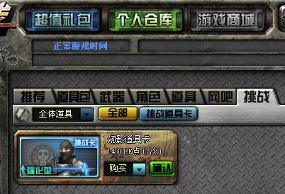 装备后,在挑战模式中击杀生化幽灵时可以获取稀有装备奖励!购买后在个人仓库内默认装备(点击左键装备或卸下),装备的道具卡数量越多,获得稀有装备的概率越高。获得一件奖励装备后会消耗一张挑战道具卡。