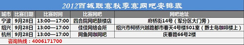 绝对霸气、绝对震撼,在结束了本赛季最后一周周赛以后,即将迎来了本赛季最后一场城市决赛,这是最后的争锋,四方战士身怀冠军梦重返战场,铺设自己的光荣之路!荣誉、激情、友情,尽在2012年浙江百城联赛秋季赛,最终谁将独领风骚?!我们翘首以待!