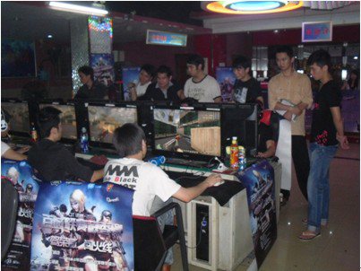网吧内赛前紧张的准备