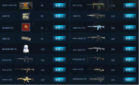 活动提供众多丰厚的武器、道具奖励,玩家们可以在次日兑换相应的奖品。M4经典系列水晶M4、M4A1-隐袭,AK经典枪械AK47-狼牙,还有加特林等热门武器,+50%经验卡、南瓜面具、水壶等同样供玩家自由选择。