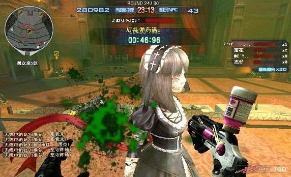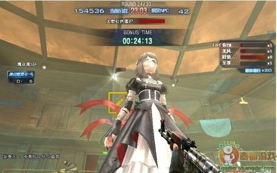 打法:进入这一关之后,会进入子弹时间,这也大大的减轻了玩家的负担,拿狙击枪的要全程跟着小萝莉,小怪就交给拿其他枪械的玩家。小萝莉刚出来的一段时间会有短时间的停顿,所以,没拿极强的玩家要在小萝莉出生的地方,等她一出来就疯狂扫射。如果有2、3把狙击枪,而且准头足够的话,可以再很短的时间内推倒,奖励分很容易就到手了。