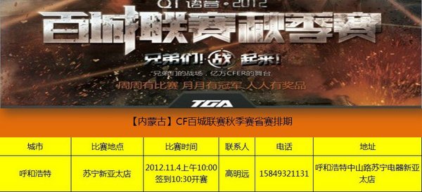 【内蒙古】2012CF百城联赛秋季赛省赛重磅登场!