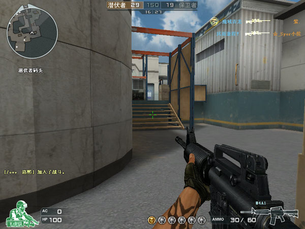 匪家出来右边直接上平台就可以开始激战了,右边那个模板下的小角落就是很多潜伏阴人的地方,上文提到过。要想玩好这个图,那么平台上的木箱穿点就一定要掌握好,很关键