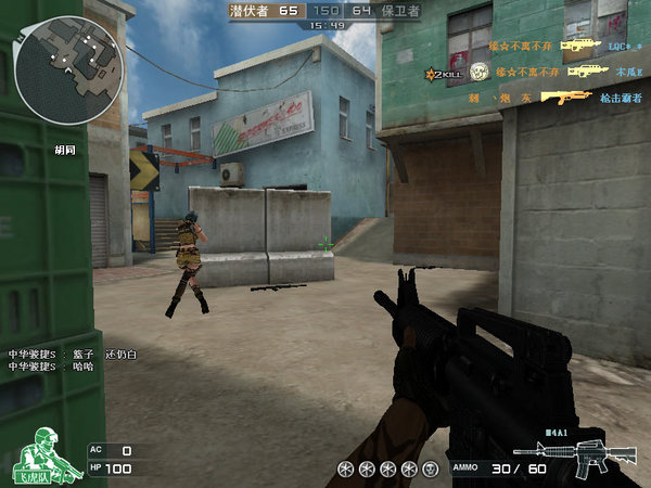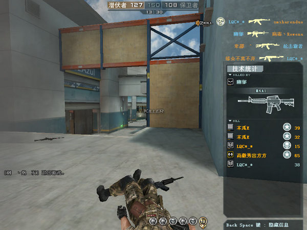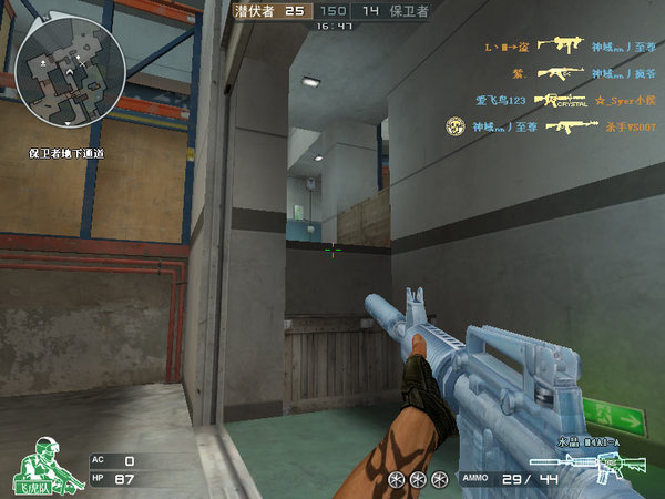 首先从保卫开始带大家看,警家出门,走起!(拿到出去直接就让人给撂倒了,囧)接下来我们走到举雷英勇就义那个小伙前面的木头柱子侧面。在这里可以有一个空隙偷袭右路压家的潜伏。但是注意你前面的事箱子,不是墙~所以大家懂的。