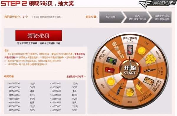 领取道具奖励之余,每个QQ号码都有一次领取5彩贝积分的福利,玩家开通财付通账户之后,即可使用彩贝积分进行抽奖,单次抽奖消耗1彩贝积分,抽奖每天只能进行一次。