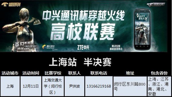 【上海】中兴通讯杯穿越火线高校联赛半决赛即将开战