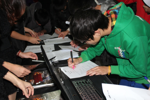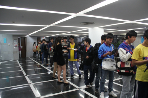 活动尚未开始,报告厅门口就排起了长长的队伍。这些慕名而来的同学正式穿越火线的忠实拥趸,面对”CF2012校园行”的召唤,他们毅然选择了应征入伍,全身投入到这场看不见硝烟的战争中来。