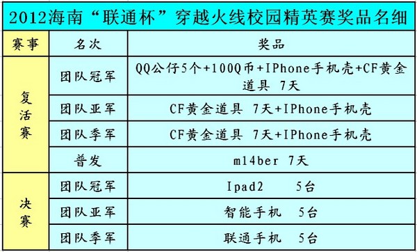 2012海南“联通杯”穿越火线校园精英赛,只要你是联通用户,就可拥有复活赛的特权,只要你拿到复活赛周赛冠军,就可直接晋级总决赛,CFer,战起来吧!!