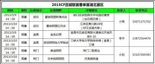 2013CF百城联赛春季赛湖北赛区于上周末3月2日,在武汉、宜昌、荆门3城市同步开赛了。新一轮的赛事,新的主题月,引发众多cfer的热情,各赛场此起彼落的“NICE”声不断,让周遭的人群也都大发好奇心,纷纷来到我们的赛事区域围观。