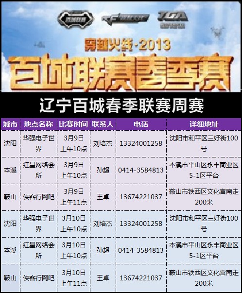 本溪、鞍山3月9日同时开赛!【本溪】百城联赛指定赛点红星网络会所迎接各路CF英豪,点燃火线新的征程。【鞍山】做为CF神将辈出的地方,本届百城联赛期待下一个王者的诞生!