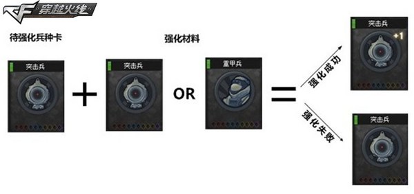 其二:游戏外战场模式成长体系;战场模式将增加等级系统,同时玩家可以通过强化兵种卡、镶嵌宝石来提高战场模式的游戏属性。玩家在每局战场模式结束后会有一定几率获得兵种卡,任意兵种的兵种卡都可作为材料来强化其他兵种卡,强化成功后,兵种卡的等级会提高,并增加玩家技能的伤害及减少技能的冷却时间。此外还可以通过从商城中购买宝石的方式来强化兵种卡,宝石分为增加攻击力的红色宝石、增加防御力蓝色宝石、增加弹药数的黄色宝石和增加移动速度的紫色宝石,镶嵌宝石的插槽需要通过提升战场模式等级来获得。多种强化路线、玩家斗智斗勇,让游戏更具趣味性。