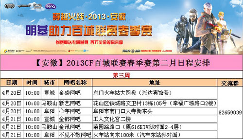 【安徽】2013CF百城联赛春季赛第二月第三周日程安排: