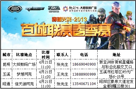 2013年CF百城联赛春季赛4月月赛即将开始,经过3周的激烈比拼,火药味弥漫在整个战场!导火线即将点燃,周赛的冠军队伍,你们准备好了吗?奖金、奖品和荣誉将是属于最后的胜利者!
